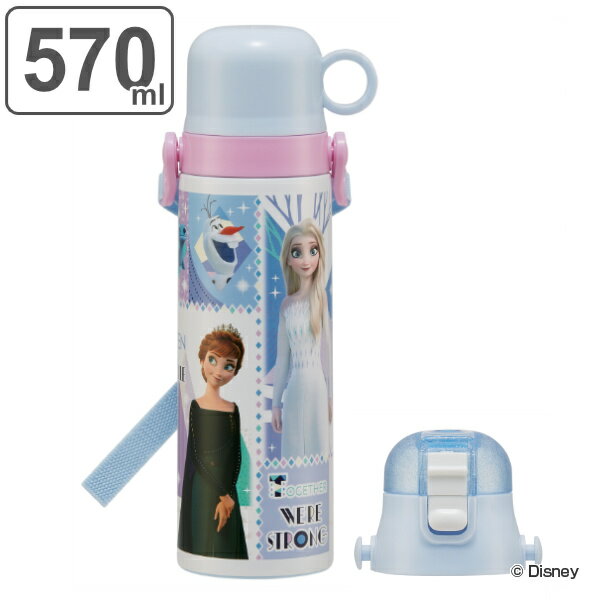 水筒 ステンレス 直飲み コップ 2way アナと雪の女王 570ml キッズ ( アナ雪 ステンレスボトル すいとう 保温 保冷 軽量 ランチグッズ 幼稚園 保育園 子供 ダイレクトボトル コップ付き 子供用 ラメ入り キャップロック )【3980円以上送料無料】