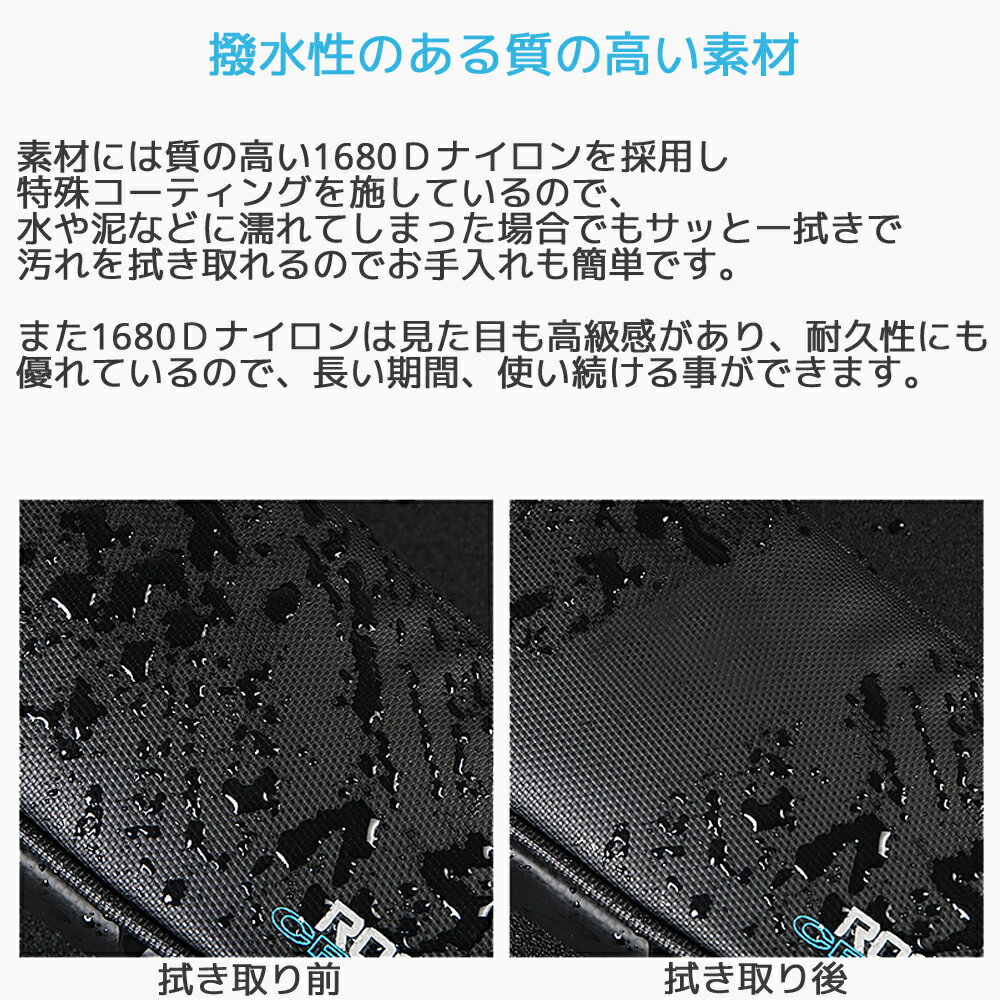 ROSWHEEL 1.5L トップチューブバッグ 121453 4〜6.7インチ対応 スマホホルダー付き 高品質撥水素材使用 ■商品詳細 サイズ:長さ20cm 幅4.5cm 高さ10cm 重量:240g 素材:1680Dナイロン(撥水仕様) スマートフォンホルダーは4〜6.7インチサイズのスマートフォンに対応しています。
